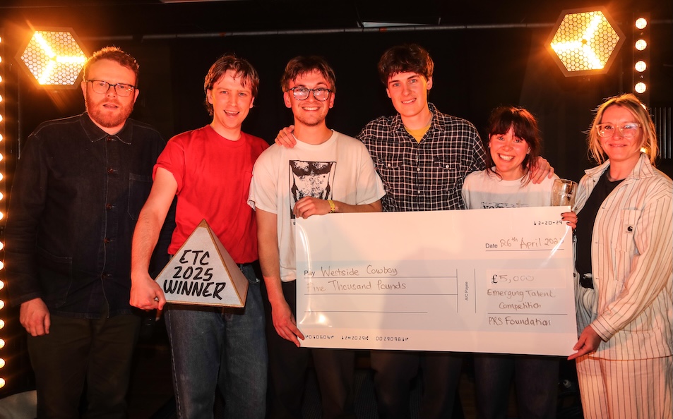 After a fantastic night of live music in Pilton, Manchester-based “Britainacana” band Westside Cowboy were named the winners of our 2025 Emerging Talent Competition, which is supported by PRS for Music and the PRS Foundation.